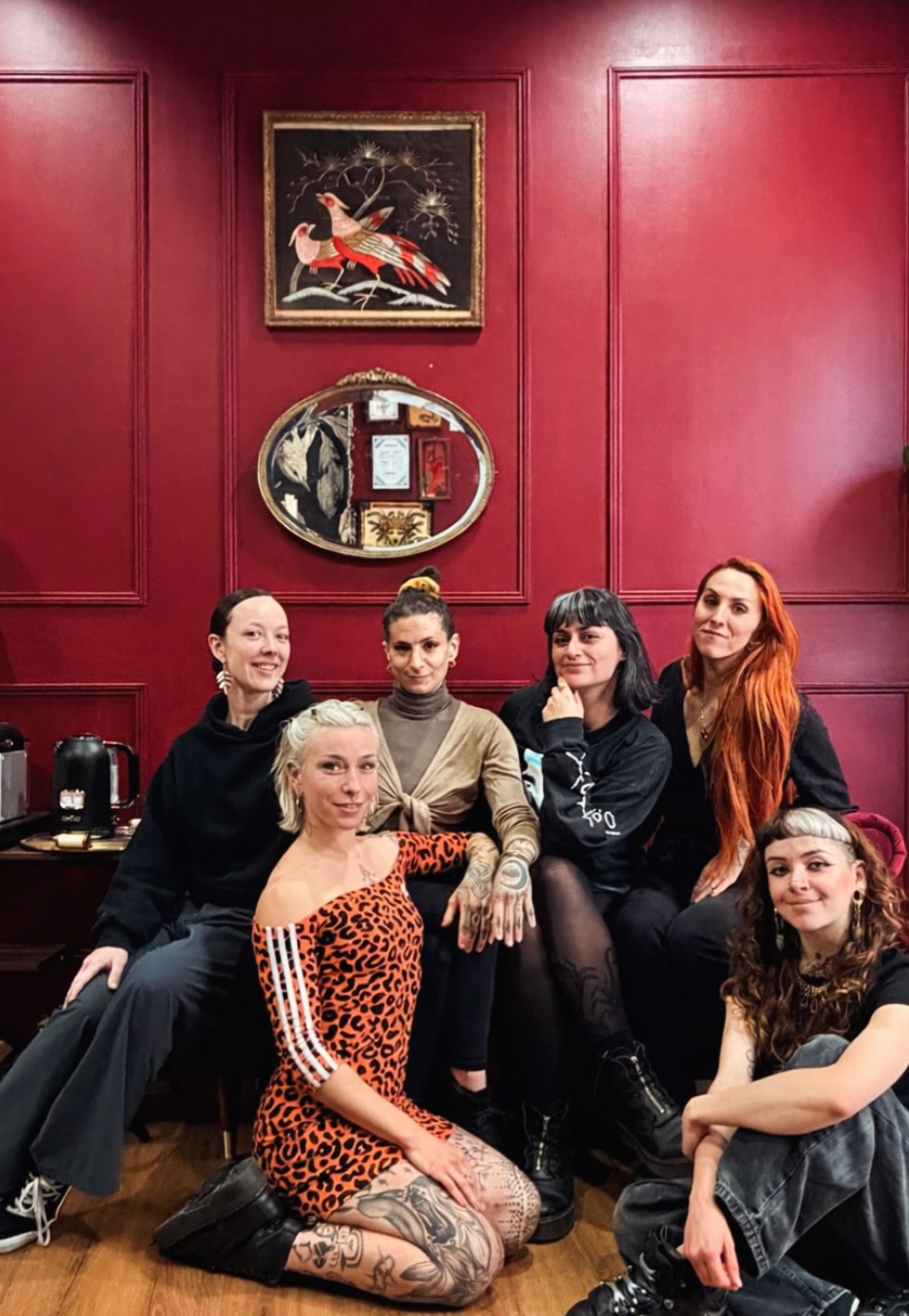 Dans le cœur vibrant de Toulouse, l’équipe de Bisque Rage se compose de six femmes talentueuses, toutes unies par leur passion pour l’art corporel. Cinq tatoueuses, chacune avec un style unique, et une pierceuse experte complète cette harmonie en sublimant votre corps avec finesse et créativité. Ensemble, elles forment une sororité vibrante ou l’authenticité et la diversité entrent en résonance, invitant chaque client.e à découvrir son propre voyage.