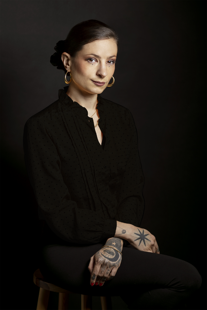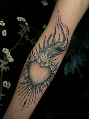 Son travail s’inspire du tattoo traditionnel avec un style blackwork, qu’elle réinterprète dans un langage visuel fort, centré sur les émotions, les cycles de vie et les passages intérieurs. Chaque pièce est unique, elle se crée lors d’une rencontre entre une histoire, une intention, et une personne.